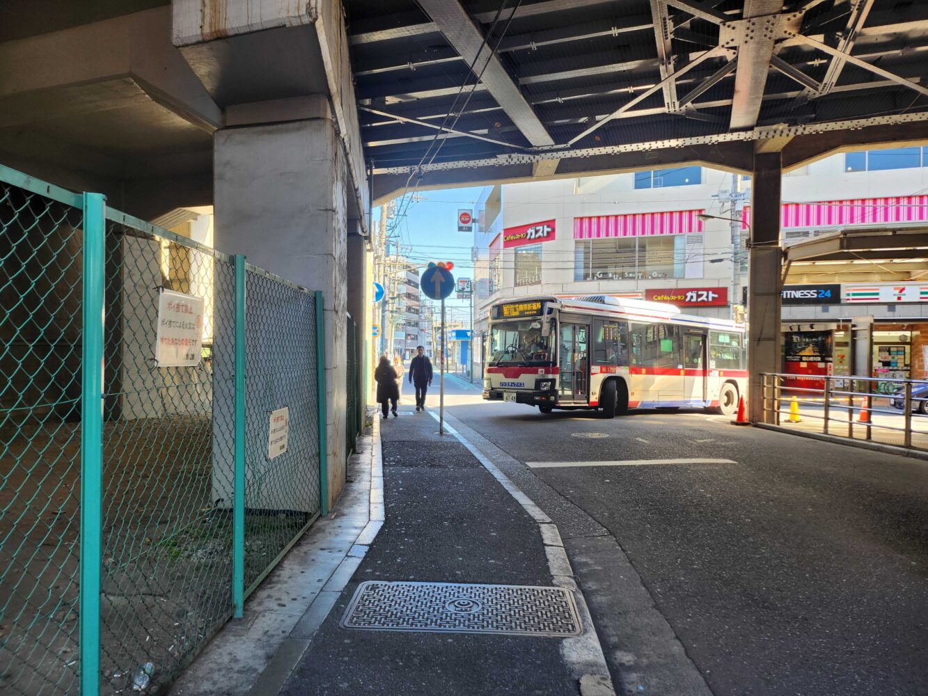 バスが通りますので、お気をつけてください。